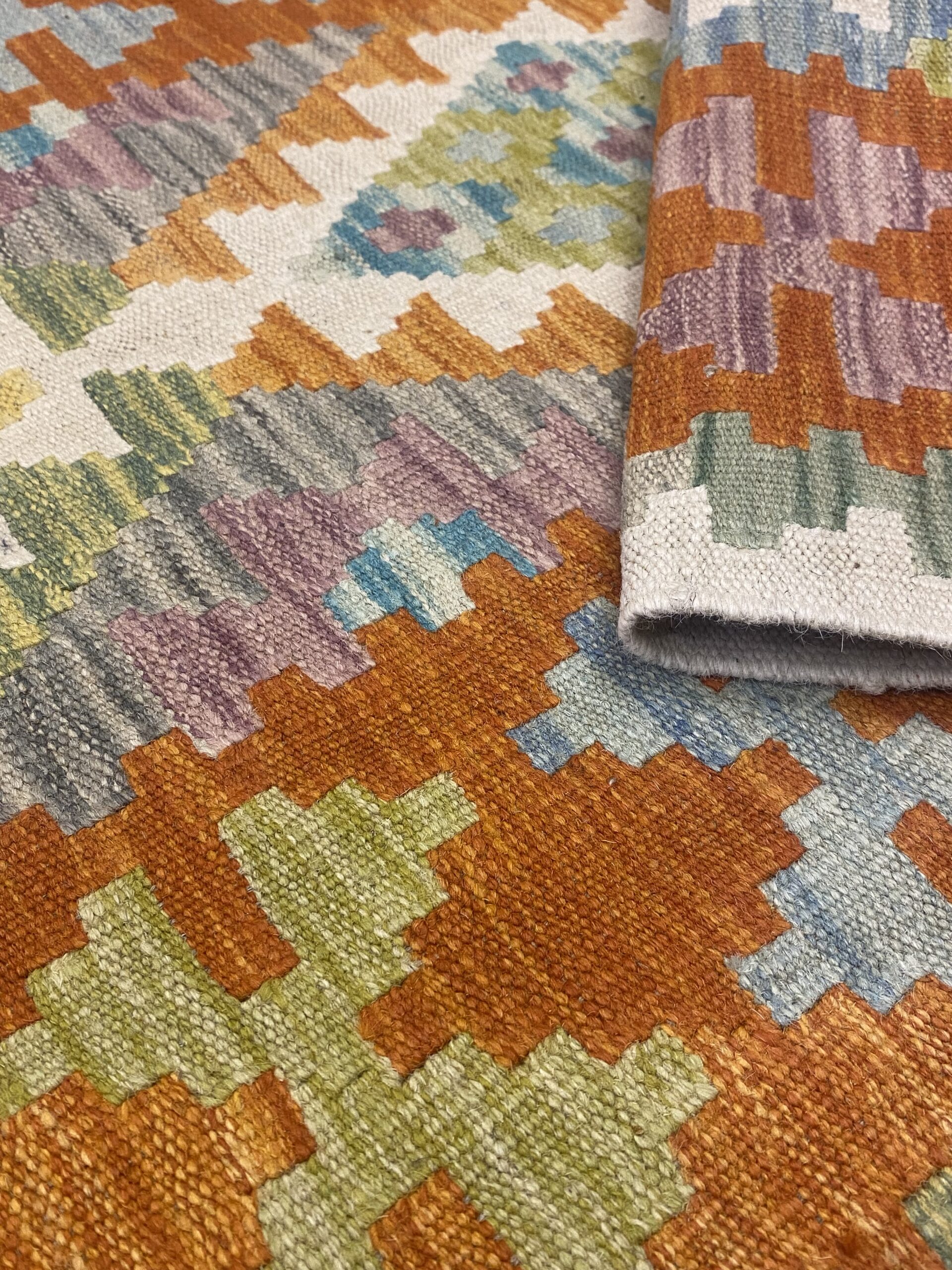 Ev dekorasyonunda fark yaratmak isteyenler için özenle seçilmiş, %100 el dokuması bu özel Afgan kilimi, hem estetik hem de kültürel zenginliğiyle öne çıkıyor. Her ilmeğinde ustalık ve sabır barındıran bu kilim, otantik desenleri ve doğal yün dokusuyla yaşam alanlarınıza sıcaklık katacak.