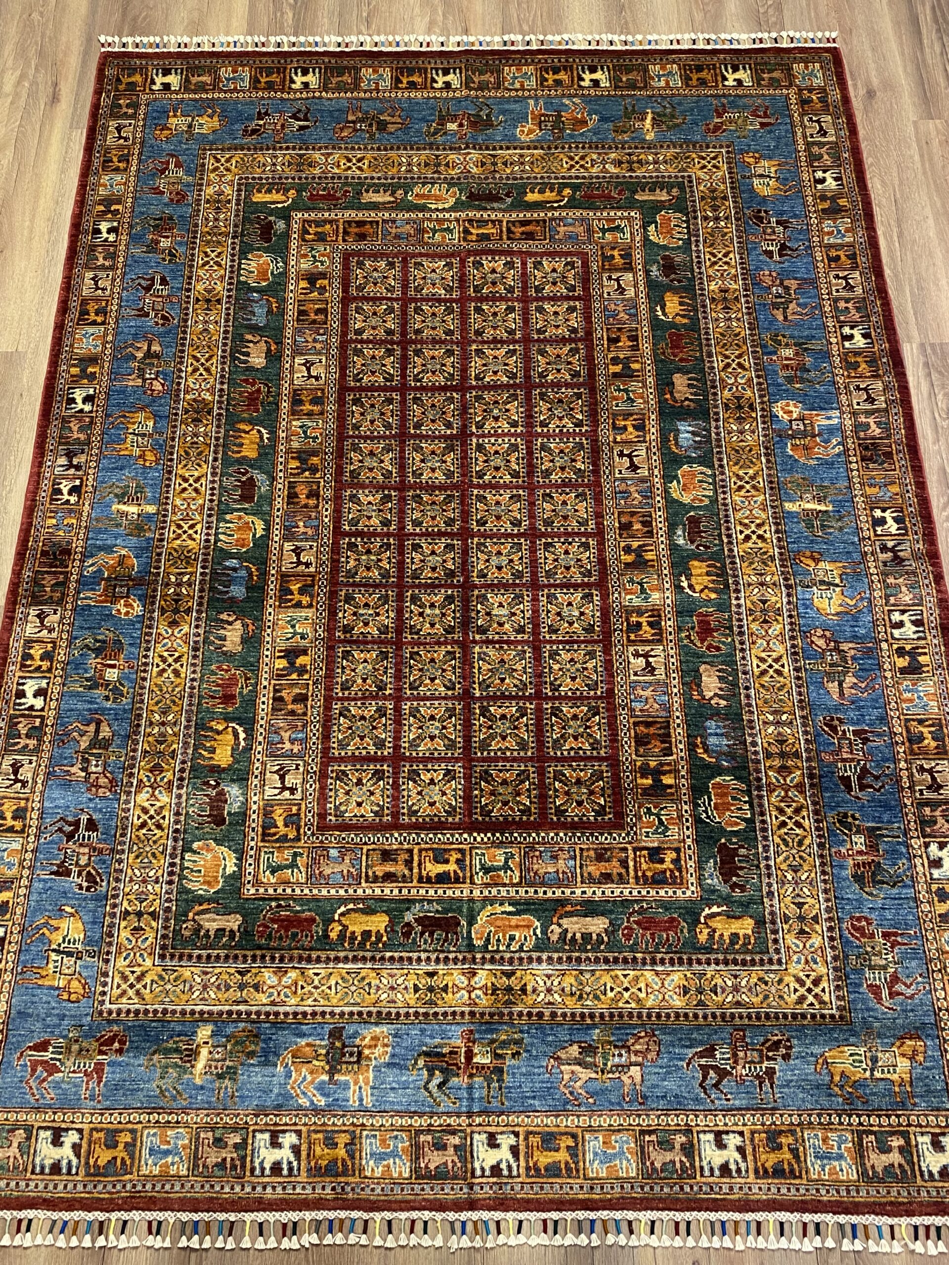 Orta Asya’nın binlerce yıllık dokuma mirasının en şaşaalı temsilcilerinden biri olan Afgan Pazırık Halıları, her bir ilmeğinde zamanın ötesinden gelen bir ihtişamın ve kendine özgü, gizemli desenlerin izlerini taşır. Afganistan’ın usta dokuyucularının mahir ellerinde, asırlar boyu süregelen geleneksel tekniklerle, en kıymetli doğal yünler büyük bir özenle işlenir ve sıklıkla doğal kaynaklardan elde edilen canlı ve derin renkler kullanılır. Pazırık halılarının kendine has geometrik yapıları, stilize edilmiş hayvan figürleri ve soyut desenleri, bulundukları mekanlara sadece bir zemin örtüsü değil, aynı zamanda kadim bir sanat eseri ve kültürel bir mirasın taşıyıcısı olma özelliği katar.