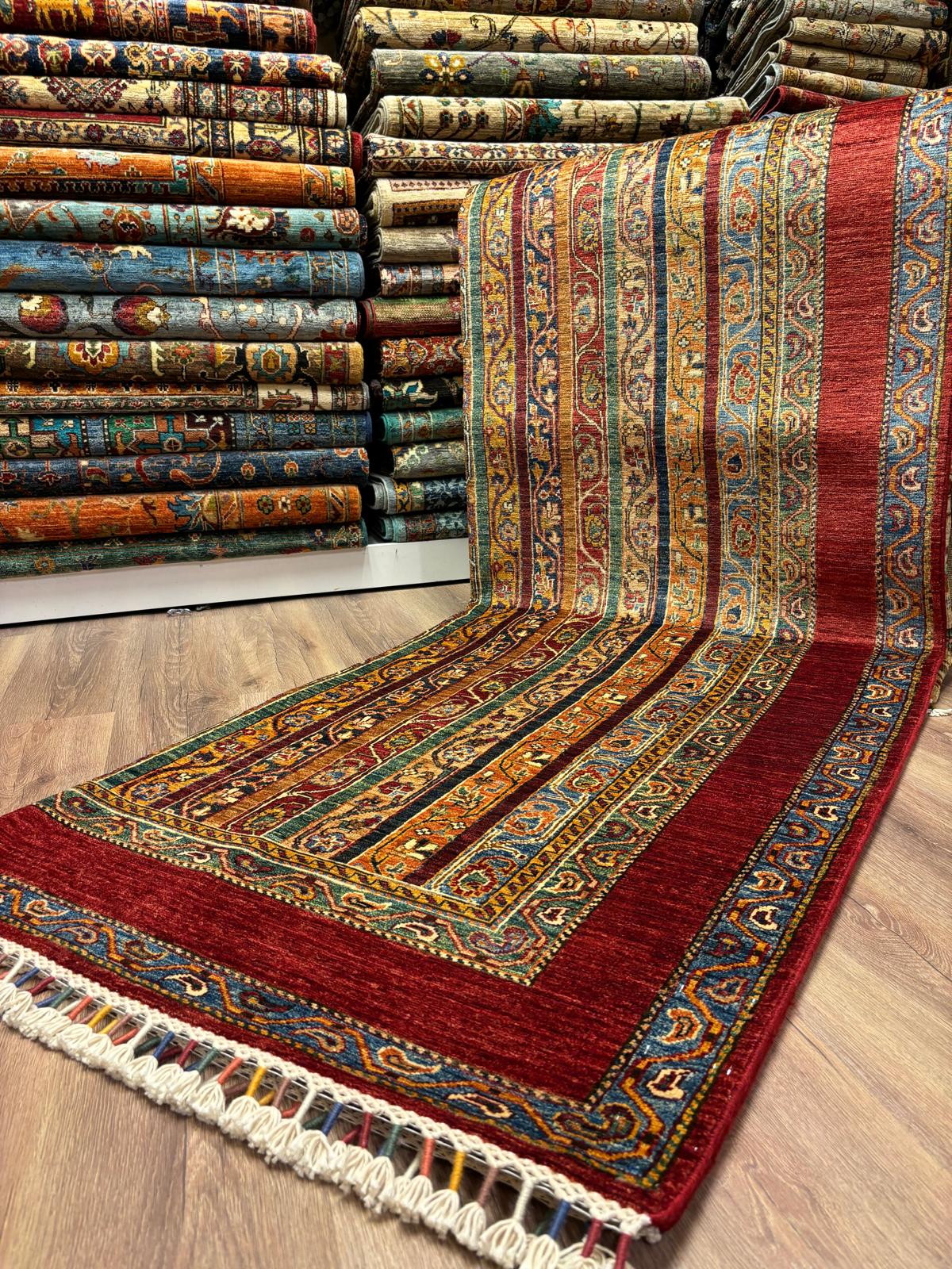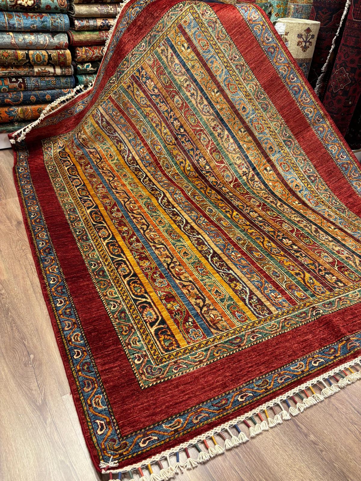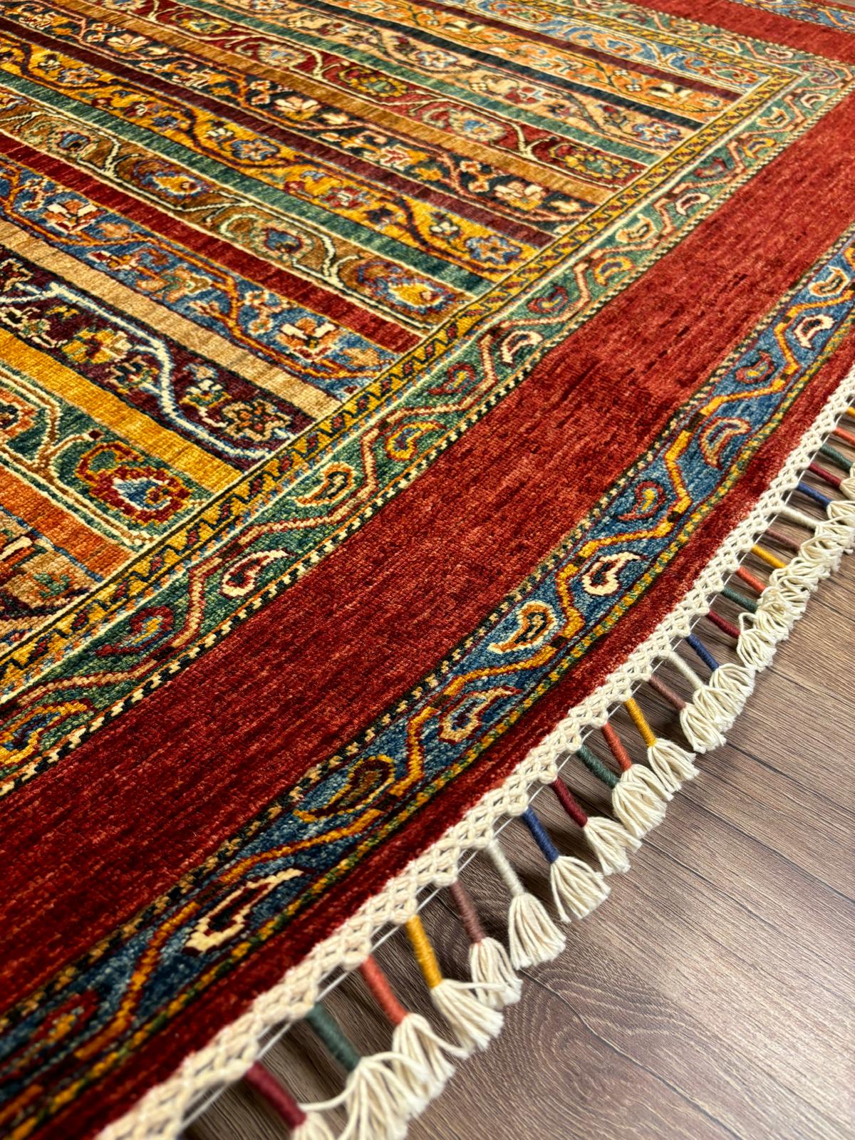 El dokuma Afgan Şal Model halımız. %100 yün ve kök boya kullanılarak özenle dokunmuştur.Birinci kalite işçiliğe sahiptir.Afganistan’dan ithal edilmiş nadide bir üründür. Tamamen el emegi göz nurudur.