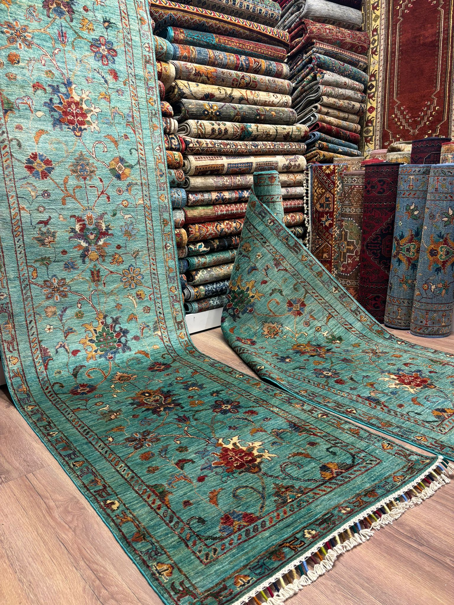 Tezgahtan yeni çıkmış , Afganistan’dan ithal edilmiş nadide bir üründür. Tamamen el emeği göz nurudur. Fiyatımız çift yolluk için geçerlidir. Fethiye Halı kalitesi ve güvencesi ile sahip olabilirsiniz.